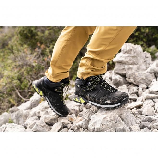 Черевики Millet High Route GTX - чоловічі альпійські гірські черевики, призначені для високих темпів прогулянок і тривалого перебування на пересіченій місцевості. Середня висота черевика в порівнянні з класичними, безумовно додає комфорту. Класична оксамитова поверхня з нубуком стійка до зносу, вона зроблена гідрофобною і водонепроникною для підвищення захисної здатності.