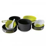 Набір посуду Pinguin Quadri Alu X - хороший, середнього розміру дуже компактний набір для невеликої групи людей. Завдяки тому, що він зручно пакується один в один, його легко транспортувати та займає він мало місця у вашому рюкзаку. Ручки просиліконені, щоб зручно було брати гарячий посуд. За рахунок радіатора на казанку, ви економите на 30% менше палива, у порівнянні із казанками без нього.