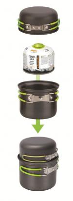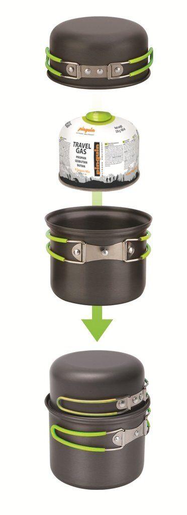 Набір посуду Pinguin Solo - хороший варіант для соло мандрівки. Набір складається із двох частин, що додає більшу варіативність у ваші сніданки та вечері. Також він зручно пакується. та відповідно мало займає місця у вашому наплічнику.