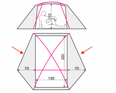 Практичний трьохсезонний 2-х містний намет. Нова вдосконалена форма каркаса максимально збільшує обсяг спального приміщення. Великі і зручні тамбура, в яких можна розмістити речі і спорядження. Два входи дають можливість прямого доступу в спальню і забезпечують ідеальну вентиляцію. Просте і швидке збирання та розбирання.