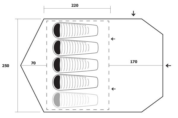 Намет Trimm Camp 2 - просторий намет для 4-5 людей із великою варіабельністю входів і тамбуром великого розміру. Легке та швидке встановлення.