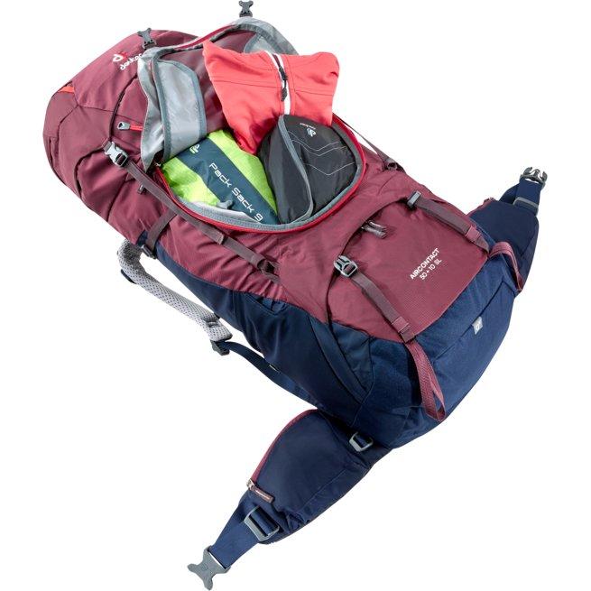 Deuter Aircontact 50 + 10 SL - надійний та об'ємний жіночий рюкзак, для мандрівок, та походів в гори. Оновлена версія з полегшених матеріалів, але з традиційною німецькою надійністю.