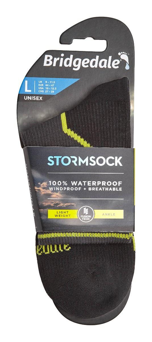 Bridgedale Stormsock Lightweight Ankle - 100%  водонепроникна шкарпетка, з щільною, еластичною підкладкою в районі пятки та щиколотки, крутий варіант для активного відпочинку, де важливий баланс дихаючих та теплоізоляційних властивостей. Шкарпетки чудово підійють до трекінгу чи хайкінгу у вологій місцевості.