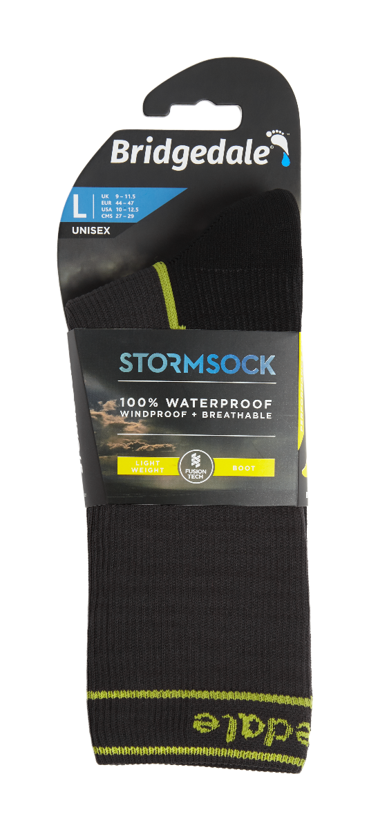 Bridgedale Stormsock Lightweight Boot - 100%  водонепроникна шкарпетка, з щільною, еластичною підкладкою в районі пятки та щиколотки, крутий варіант для активного відпочинку, де важливий баланс дихаючих та теплоізоляційних властивостей. Шкарпетки чудово підійють до трекінгу чи хайкінгу у вологій місцевості.